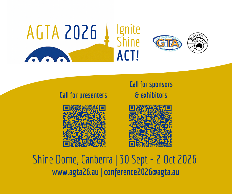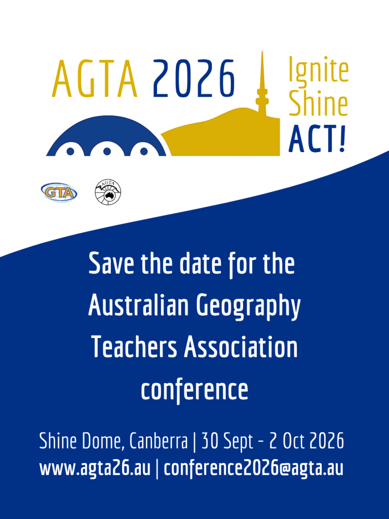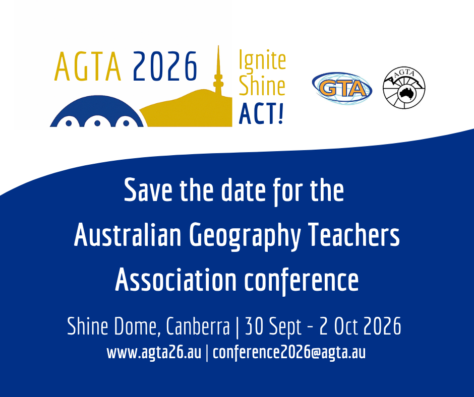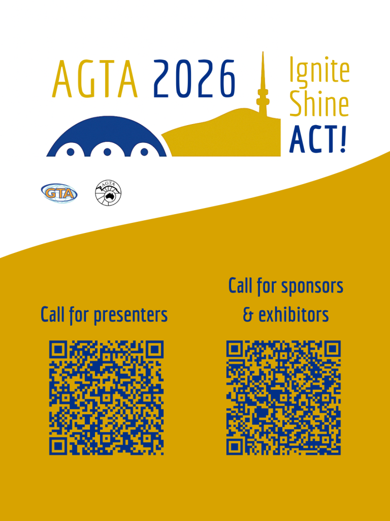 AGTA 2026 Conference AGTA 2026 Conference banner image – landscape AGTA 2026 Conference banner image – square Save the date graphics Right-click to download Presenter & sponsor/exhibitor QR links Right click to download. Download a conference flyer AGTA Logo AGTA Logo AGTA Logo (Transparent background) AGTA Logo (With Australian Geography Teacher Association text) GowithGeo #gowithgeo logo